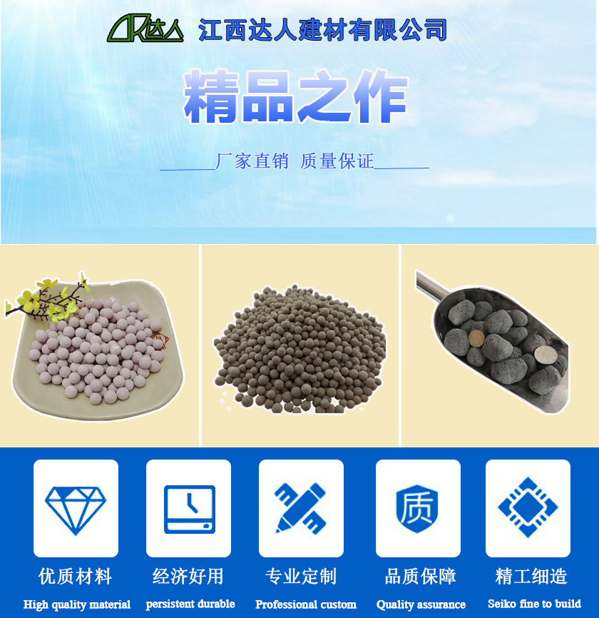 江西達人建材有限公司是一家集研發、生產、銷售輕質陶粒廠家,我司主要經營建筑陶粒、回填陶粒、保溫陶粒、頁巖陶粒、黏土陶粒、水處理陶粒、陶粒砂濾料、花卉陶粒、高強度陶粒、煤矸石陶粒、混凝土陶粒、輕質陶粒隔墻板等一系列產品,遍布各省數十家戰略合作伙伴供貨,貨源充足,實力雄厚,采購陶粒值得選擇。